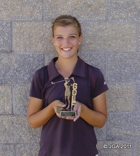 Jessica Heimonen has been named the 2011 JGA Player of the Year. Heimonen, a junior at Portage Central, had an excellent JGA season winning 4 tournaments and finishing 2nd in two other tournaments in the 16-18 age group. She shot a career low round of 72 at Lake Michigan Hills and finished the season with a scoring average of 79.88, 20 strokes lower than her 2010 average. “I noticed Jessica at the Dome all winter working on her game” says JGA Director Dean Marks, “I think she’s a great example of what hard work and determination can achieve.”